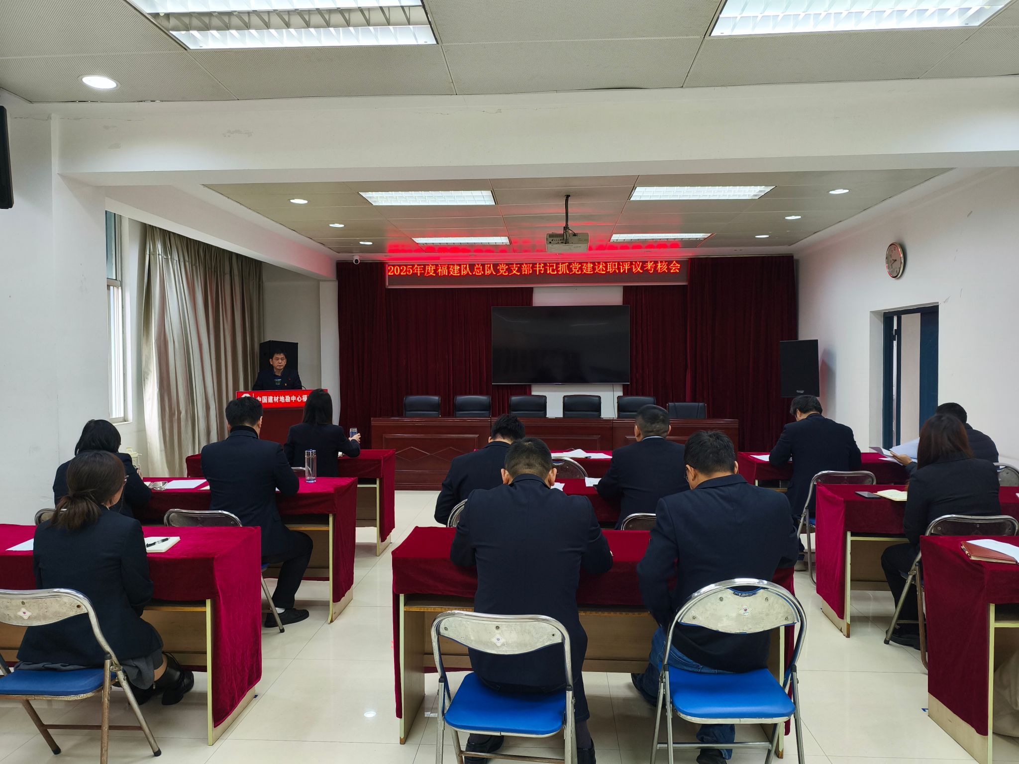 为深入贯彻落实习近平新时代中国特色社会主义思想,牢固树立党的一切工作到党支部的鲜明导向,推动党支部书记认真履行党建工作职责。1月26日,福建总队召开2025年度党支部书记抓党建述职评议考核会。保障服务支部、资源勘查支部、工程勘察支部的党支部书记及各支部委员参加了述职会。